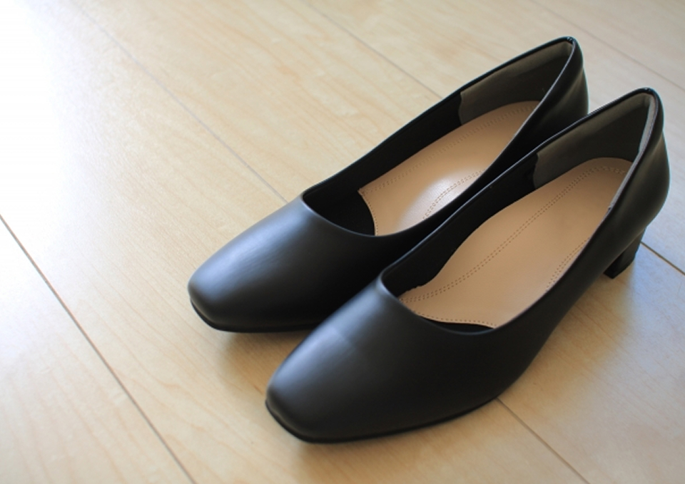 | 女性 | 黒一色でつま先が閉じた婦人靴。かかとは低めで太め。 | つま先が開く形、細いかかと、強い光沢。 | 小ぶりの黒い甲留めは可。音の静かさを重視。 |